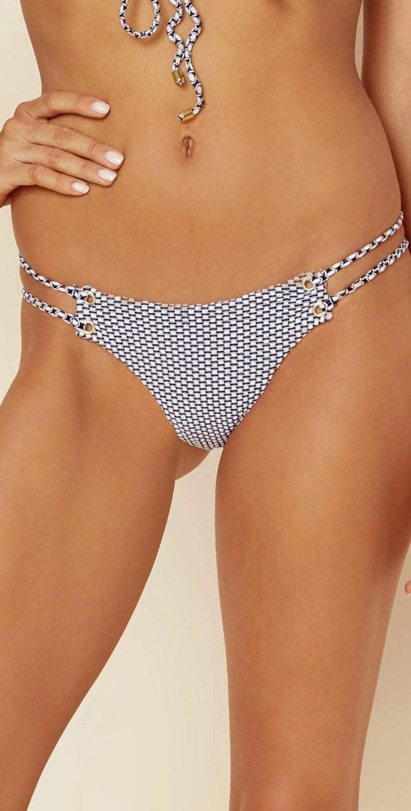 These Blue Life Island Fever Roped Up Skimpy Bottom In Seersucker have roped up side detail with a skimpy back. These bottoms pair perfectly with the Blue Life Seersucker off shoulder top!