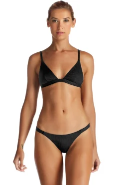 The Frankies Bikinis Enzo bottom is a high-leg style piece with a cheeky fit. The Enzo bottom features an alluring V-shape and offers cheeky bottom coverage.