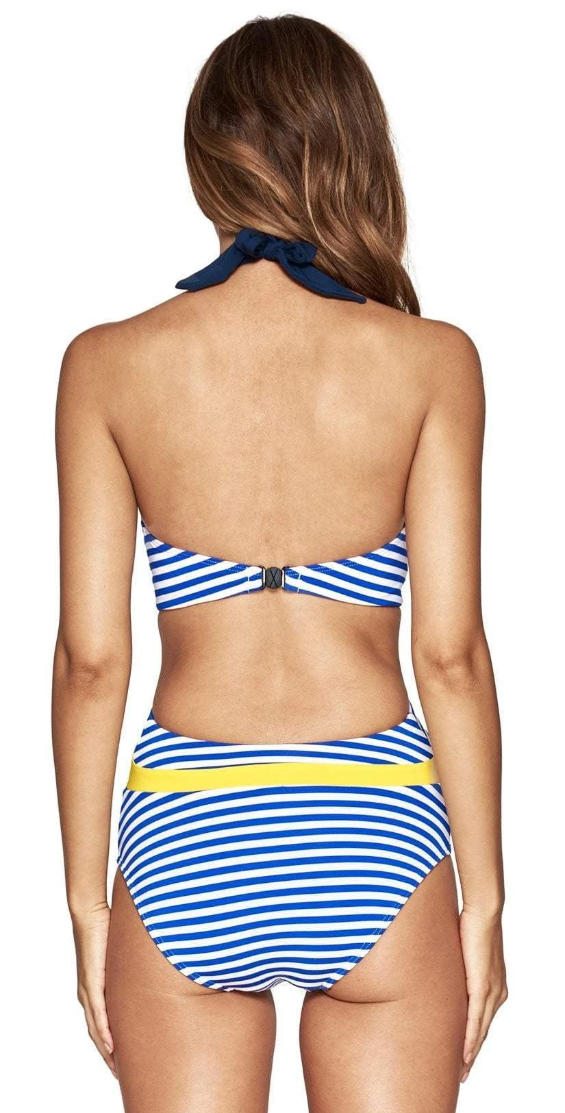 The Jets Panama Plunge One Piece is an homage to nautical luxury, this contrast striped One Piece will have you taking the plunge! With side cut-outs and a lace-up eyelet front, consider this the one-piece of the season.