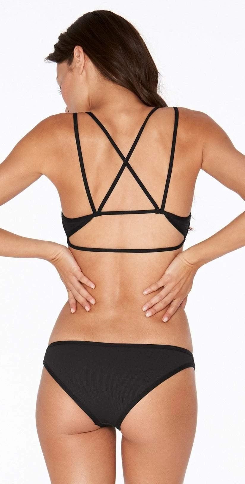 The L Space Ridin’ High Cosmo Bottom In Black is a hipster cut bottom offering a soft, ribbed material and moderate back coverage. These bottoms pair perfectly with the L Space Ridin’ High Isley Top!Â