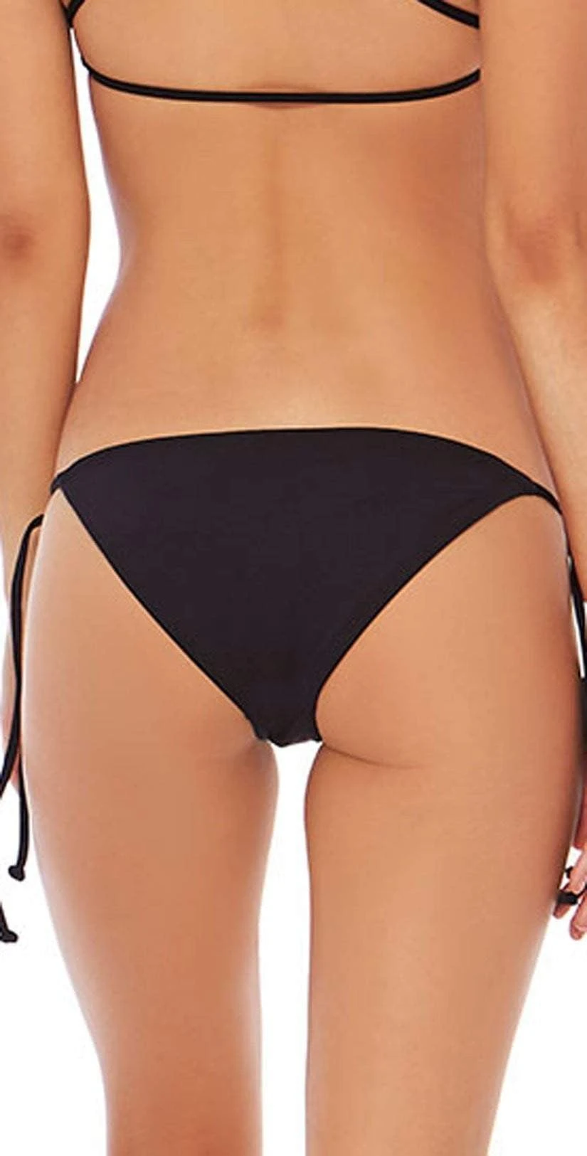 The L Space Lily Classic Bottom in Black offers sexy cheeky coverage, tie sides for the perfect fit and a seamless design for a soft look and feel. These bottoms pair perfectly with the L Space Flynn Bikini Top in Black.Â