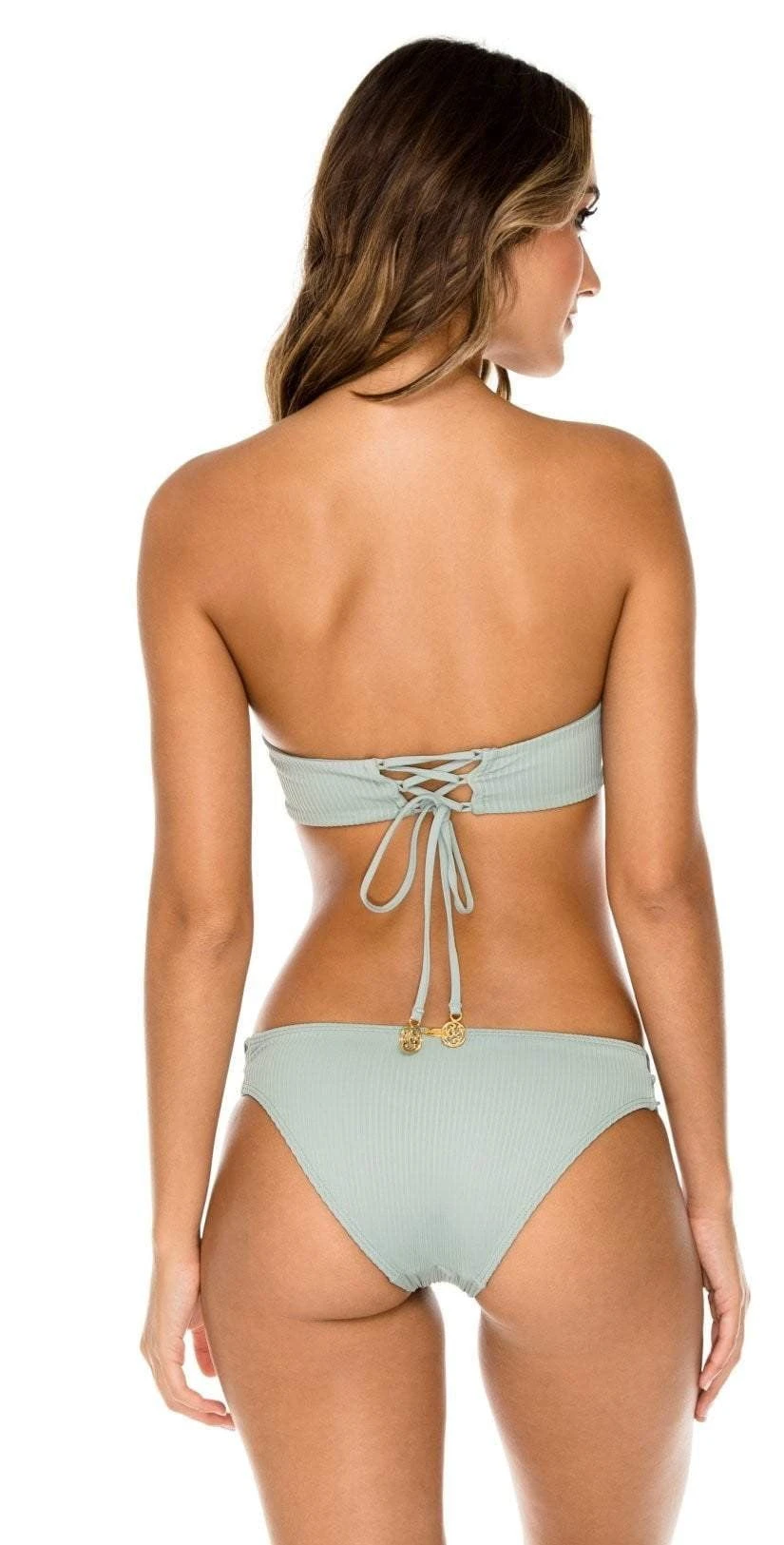 The Luli Fama Orillas del Mar Underwire Bandeau Bikini Top features a chic ribbed fabric with an underwire push up design and a thicker underbust band for added support. This top comes with removable straps and has a lace up back for the perfect fit.Â