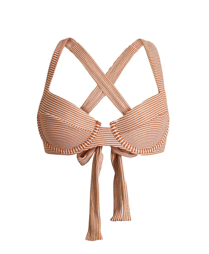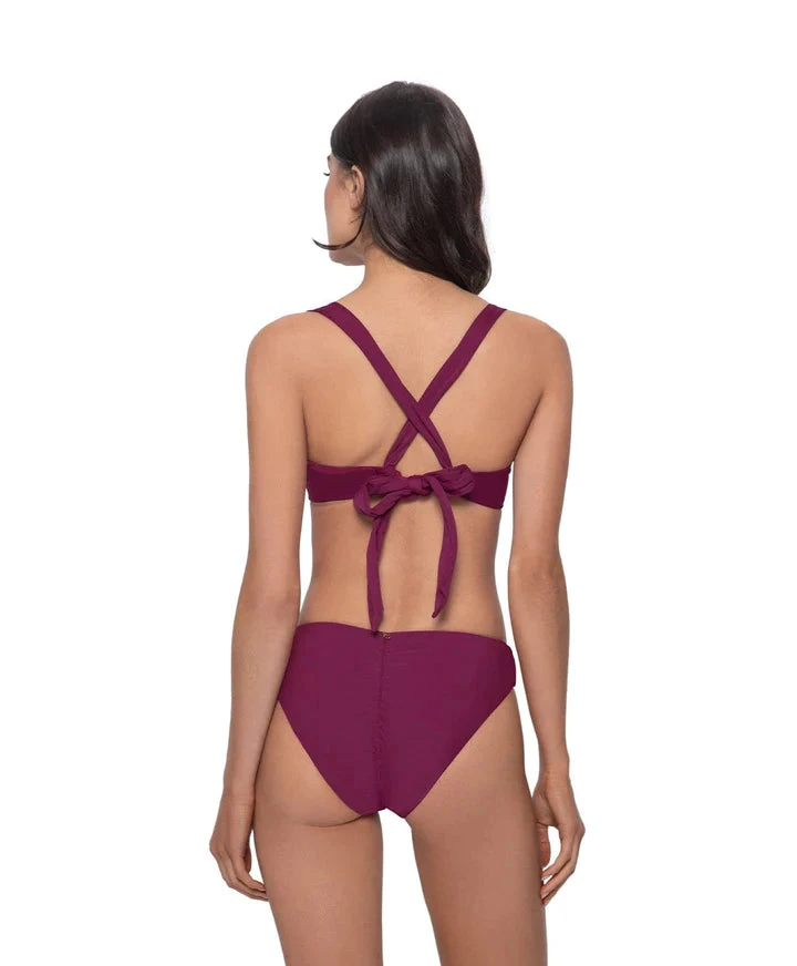 This halter will give you that extra lift you are looking for. Comes with supportive underwire, crossed straps, and a tie closure in the back. Pair it with the matching PQ Swim Summer Hibiscus reversible basic ruched bottoms for the perfect set. Does not have removable padding.Â