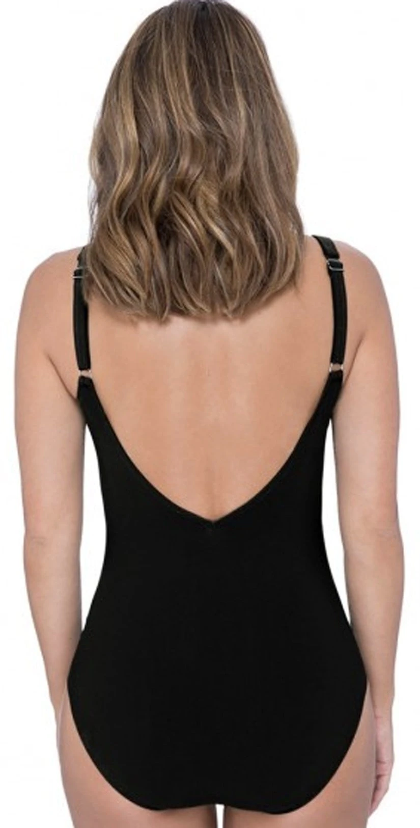 TheĀ Profile by GottexĀ Moto V Neck One Piece Swimsuit features a plunging lace up v neck front with ruched sides for a figure flattering look. ThisĀ suitĀ offers adjustable straps, tummy control and full bottom coverage.