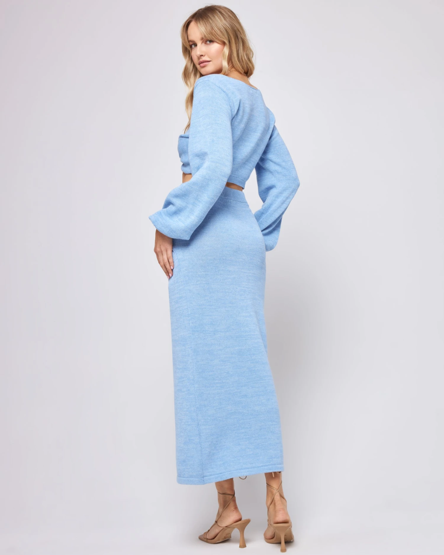 Calling all you sirens… we’ve found the skirt for you. Featuring a ribbed waistband, surplice slit and slim fit, this midi skirt is having a major moment. Pair this versatile knit with the matching Siren Sweater or a cute tank.