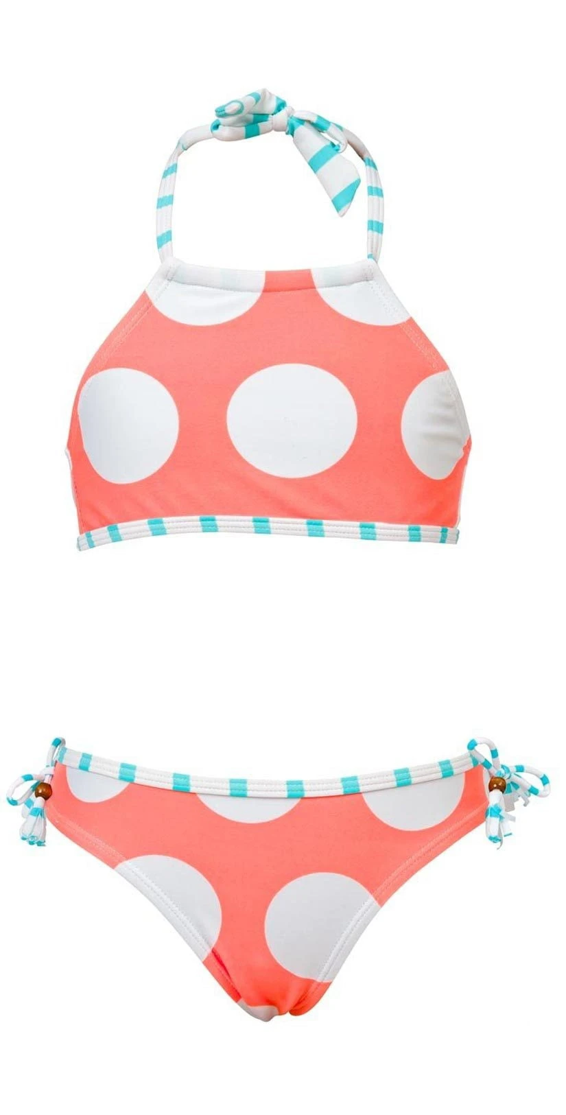 Snapperrock Girl’s Neon Coral Spots Halter Bikini Set G15042